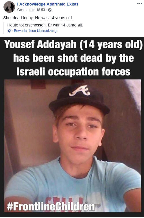 von Khan Younis mit einer Gasbombe in den Kopf geschossen.
