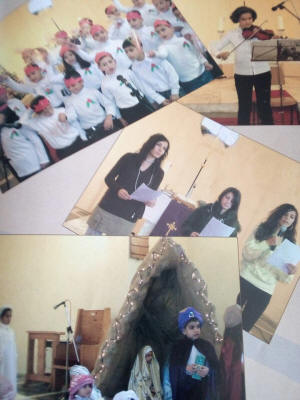 Zum Jahresabschluss wird der palästinensische Volkstanz Dabke aufgeführt und musikalisch Umrahmt. Die Volkstanzgruppe von 2010,rechts oben unser Sohn, worüber ich sehr Stolz bin. Drei Jahre haben sie zusammen getanzt und dabei andere Länder besucht, wie Norwegen, Italien, Algerien und China. Norwegische Aktivisten und Aktivisten aus anderen Ländern haben das Schulgeld für einige Kinder bezahlt, denn Israel hat die Steuergelder der Palästinenser eingefroren, sodass palästinensischen Angestellte und Behörte keinen Lohn bekommen haben. Ein Bild zeigt unseren Sohn mit Tanzpartnerin. Dabke Tänzer die in Norwegen waren, haben ihre Erlebnisse aufgeschrieben. In der Freizeit standen sie auf Skier und Schlittschuhen, was für die meisten neu und lustig war, auf den Beinen stehen zubleibend, denn in Palästina gibt es nicht soviel Schnee und er bleibt auch nicht solange liegen. Eine Ausstellung zeigt die Bastelarbeiten der Schüler mit einer musikalischen Umrahmung.