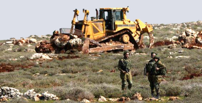 Israelische Soldaten haben am Mittwoch palästinensisches Ackerland in der Gegend von Birin, östlich der Stadt Hebron im südlichen Westjordanland, mit Bulldozern plattgemacht.
