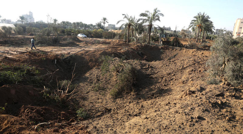 Palästinenser inspizieren ein Ziel israelischer Luftangriffe in Maghazi im Zentrum des Gazastreifens, 4. November. Israelische Kampfflugzeuge trafen in den frühen Morgenstunden mehrere Ziele in verschiedenen Teilen des belagerten Gazastreifens und verursachten Schäden, aber keine Verletzten. - Ashraf Amra