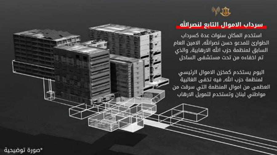 Nach Darstellung der israelischen Armee liegt unter dem Gebäude ein Bunker, in dem die Hisbollah Bargeld und Gold im Wert von Hunderten Millionen Dollar versteckt haben soll. Die Miliz konnte aus dem Bunker nach Angaben Israels zuvor auch Kämpfe befehligen. Die Armee legte keine Beweise für diese Angaben vor und veröffentlichte stattdessen eine animierte Grafik, die einen Bunker unter dem Krankenhaus zeigen soll.
