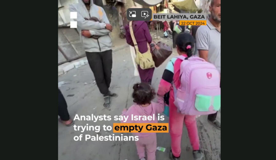 Analysten warnen, dass die Belagerung des nördlichen Gazastreifens durch das israelische Militär der erste Schritt des sogenannten ‚Generalplans‘ sein könnte, den viele als Fahrplan für ethnische Säuberungen betrachten. Quelle