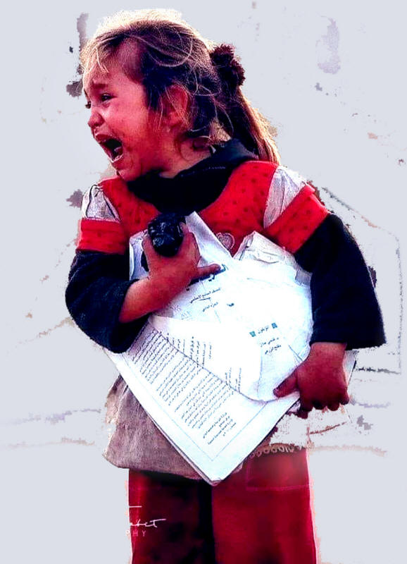 Dieses Foto eines kleinen Mädchens in Gaza galt als das weltbeste. Obwohl ihr Zuhause zerstört wurde, hat sie nur ihre Schulhefte mitgenommen.