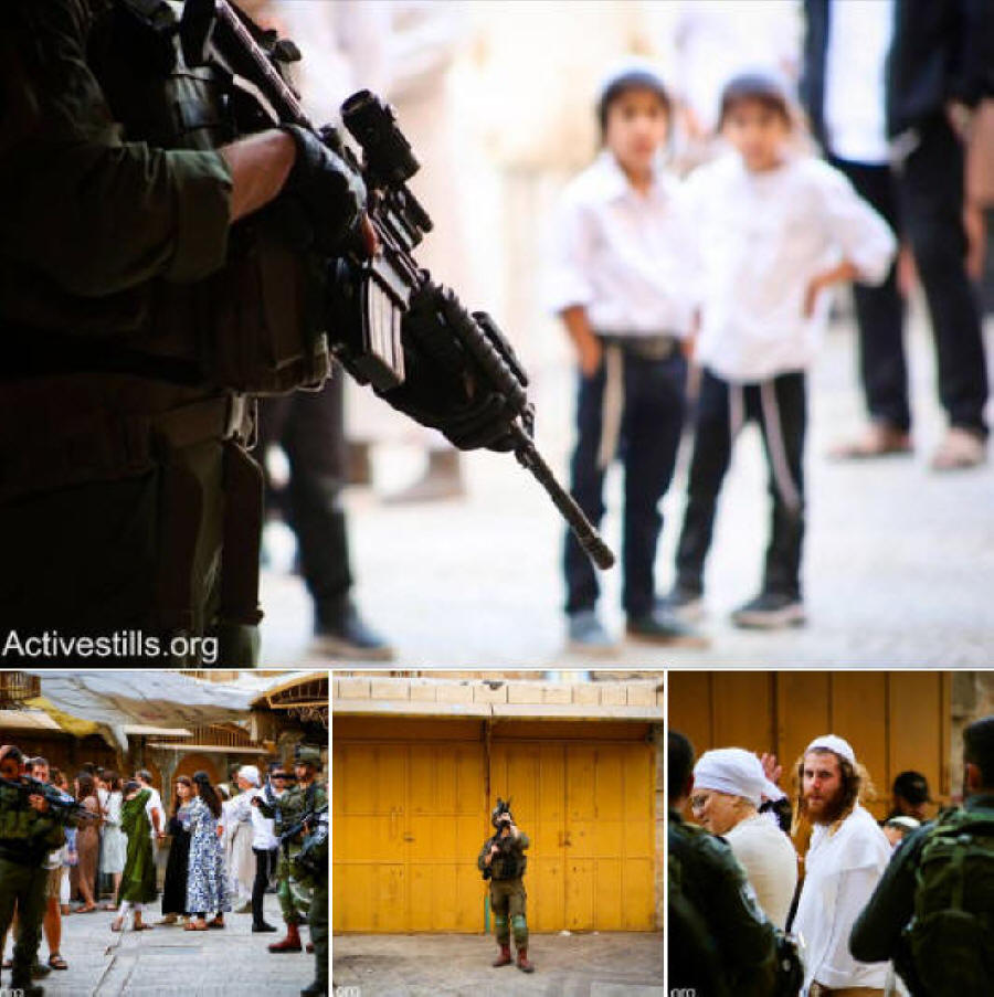 Israelische Siedler dringen unter dem Schutz von Kolonialtruppen in die Altstadt von Hebron ein und behindern die Bewegungsfreiheit von Palästinensern.