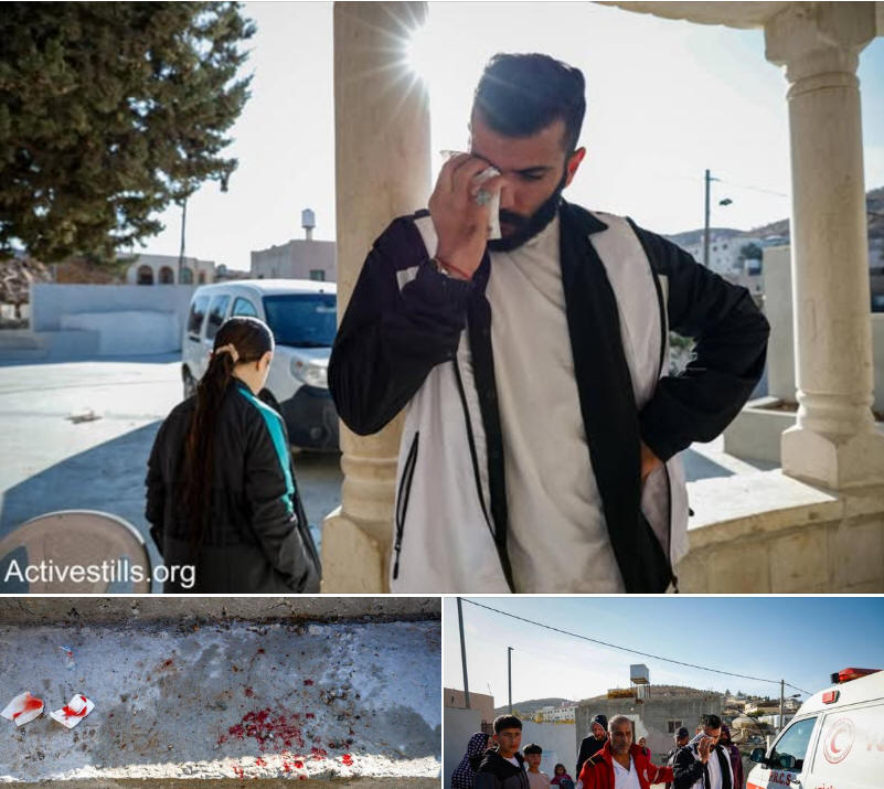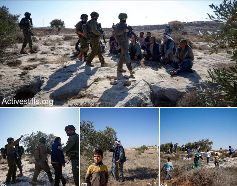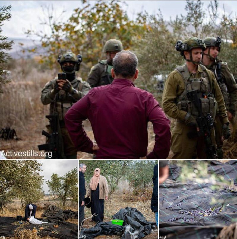 23. NOVEMBER: Die Bewohner von Beit Umra, westlich von Yatta im Westjordanland, versuchen, ihre Oliven zu ernten und ihr Land zu pflügen. Israelische Kolonialtruppen sind in das Gebiet eingedrungen, haben die landwirtschaftliche Arbeit verhindert und die Landbesitzer und Solidaritätsaktivisten gewaltsam aus den Olivenhainen vertrieben. Soldaten nahmen den Dorfvorsteher fest und bedrohten ihn mit den Worten, dass "jeder, der das Land noch einmal betritt, erschossen wird". Vor vier Monaten wurde in der Nähe dieser Ländereien ein Siedler-Außenposten errichtet. Letzte Woche wurde dort ebenfalls ein Militärposten errichtet. |
