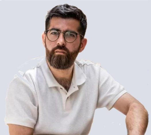 Das Foto zeigt Amal Oraby, der Hemd und Brille trägt und ernst in die Kamera blickt.