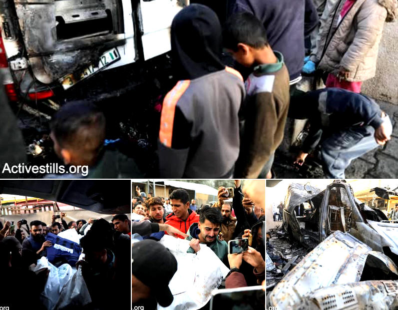 nachdem ein Luftangriff ihr Fahrzeug vor dem Al-Awda-Krankenhaus im Flüchtlingslager Nuseirat im Zentrum des Gazastreifens getroffen hatte.
