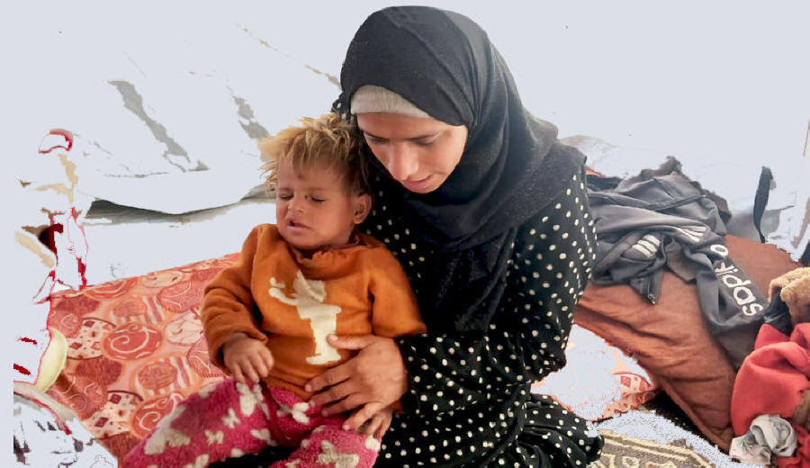 Yasmin Abu Namous und ihre Tochter Tahani in ihrem Zelt auf dem österreichischen Friedhof in Khan Younis. Shaimaa Eid