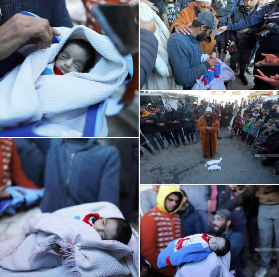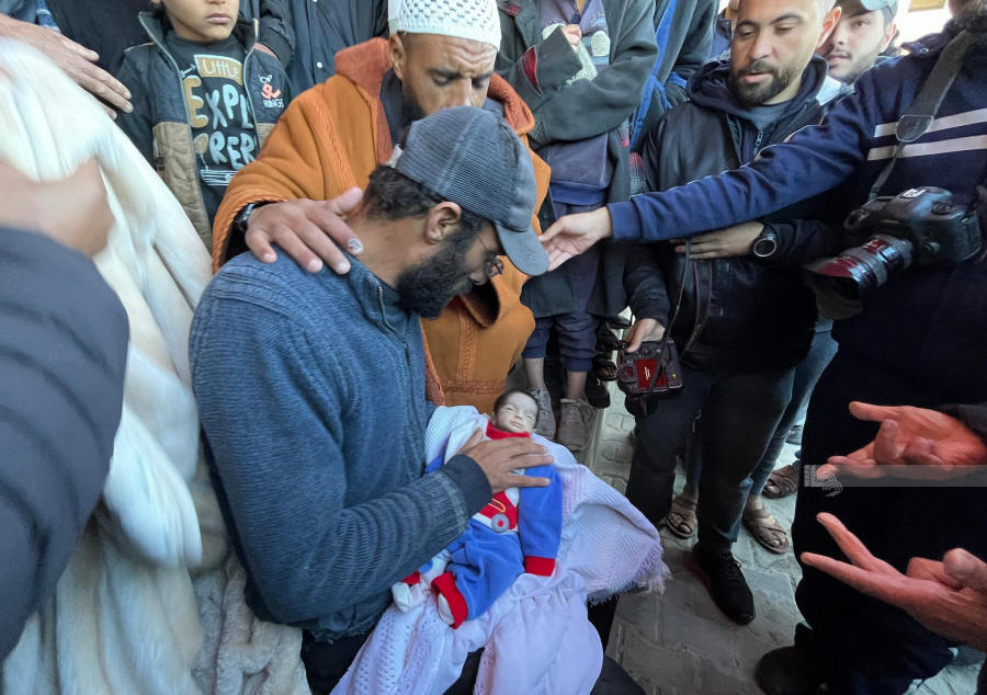 Palästinensische Bürger nahmen an der Beerdigung des einmonatigen Säuglings Jumaa al-Batran teil, der aufgrund der eisigen Kälte in Deir al-Balah gestorben war. |