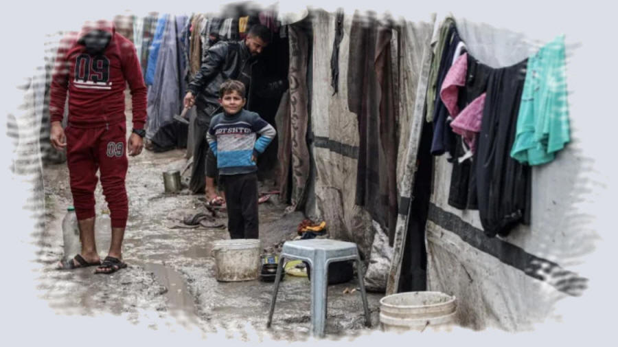 Palästinenser in Gaza kämpfen sich durch den Winter, weil ihre Zelte Regen und Kälte nicht standhalten