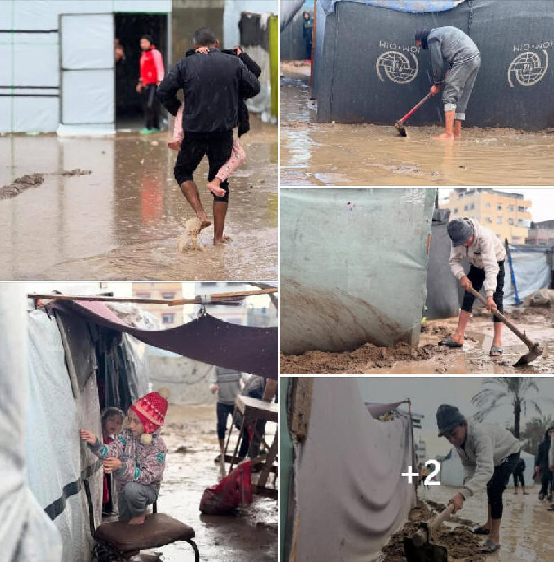 Fotos vom Leid der Vertriebenen in Zelten in den Lagern im zentralen Gazastreifen als Folge der schweren und anhaltenden Regenfälle im Gazastreifen |