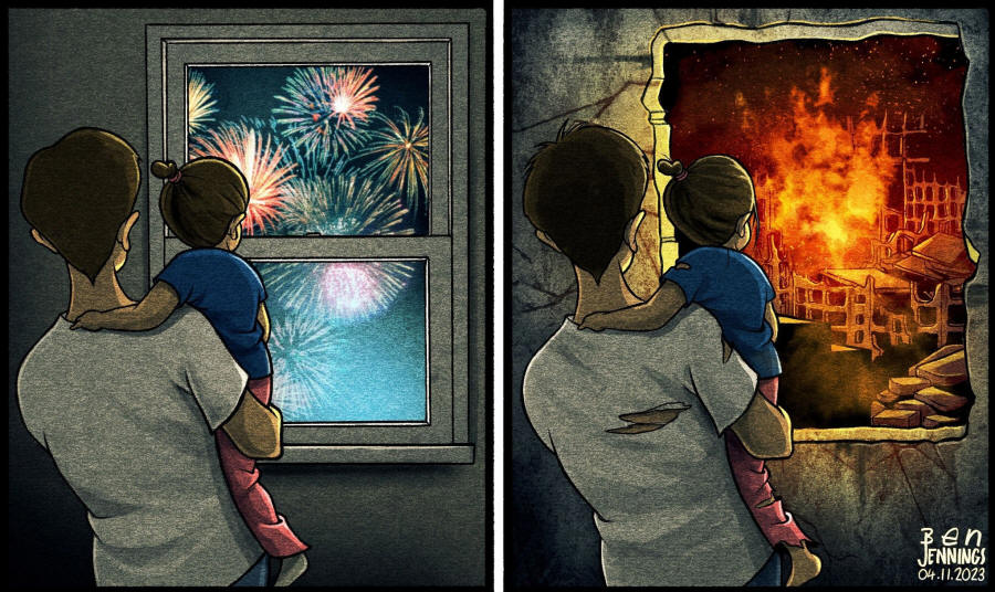 Während wir an dem warmen schwarzen Tee nippten, fragte ich sie: „Wenn es zu einem Waffenstillstand kommt, was werdet ihr dann tun? Was ist euer Plan für ein neues Jahr ohne Blutvergießen?“ Meine elfjährige Schwester antwortete begeistert: „Ich möchte zur Schule gehen und meine Freunde treffen. Ich möchte meine Lehrer treffen und wieder in meine Klasse gehen.
