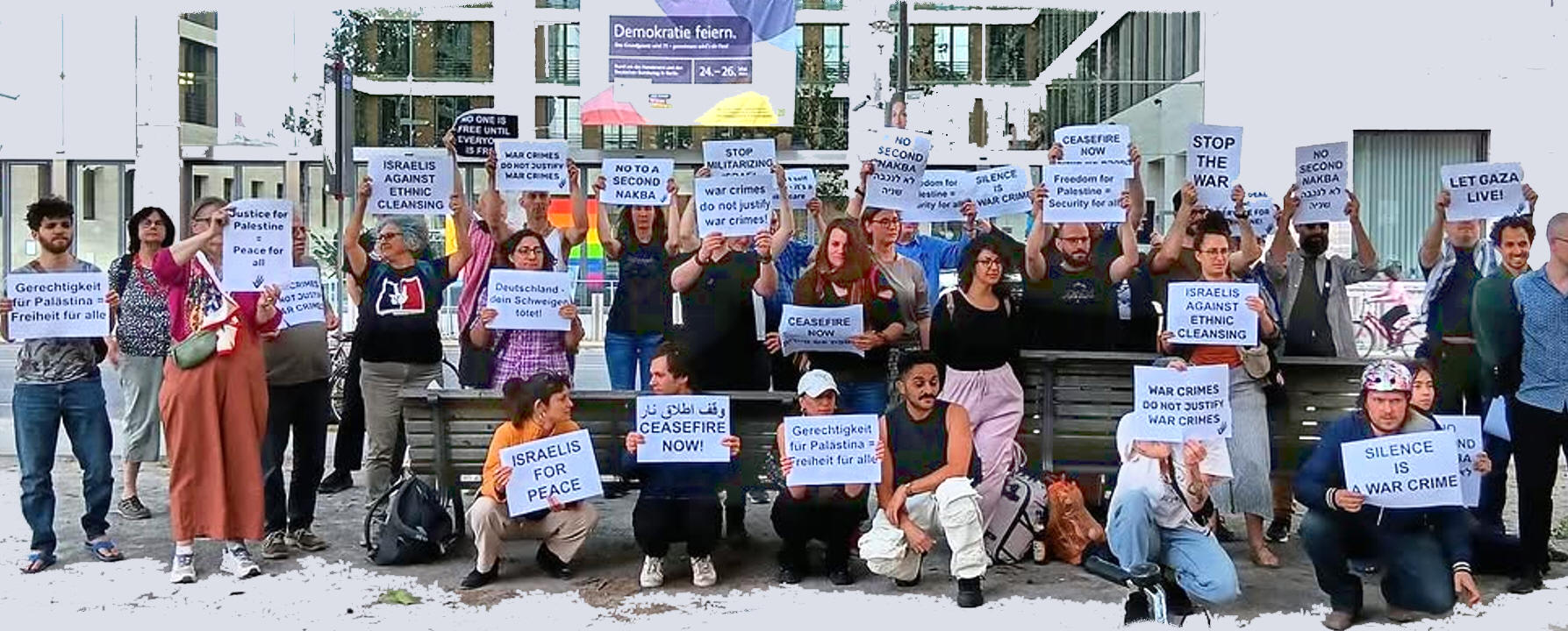 Von "Das ist kein Konflikt, das ist Völkermord" und "Pilot, hör auf, Kinder zu töten" bis hin zu "Oma, wo warst du während des Völkermords in Gaza?