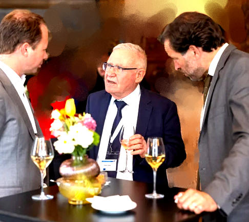 Der israelische Kriegsverbrecher Amos Yadlin (Mitte) genießt einen Drink in Brüssel. (European Leadership Network)