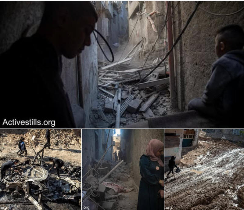 „Die Bewohner sind in einem sehr kleinen Gebiet zusammengepfercht, das die Besatzungsmacht als „humanitäre Zone“ bezeichnet und die Menschen in Gaza dazu zwingt, in dicht gedrängten Zelten am Strand zu leben“.