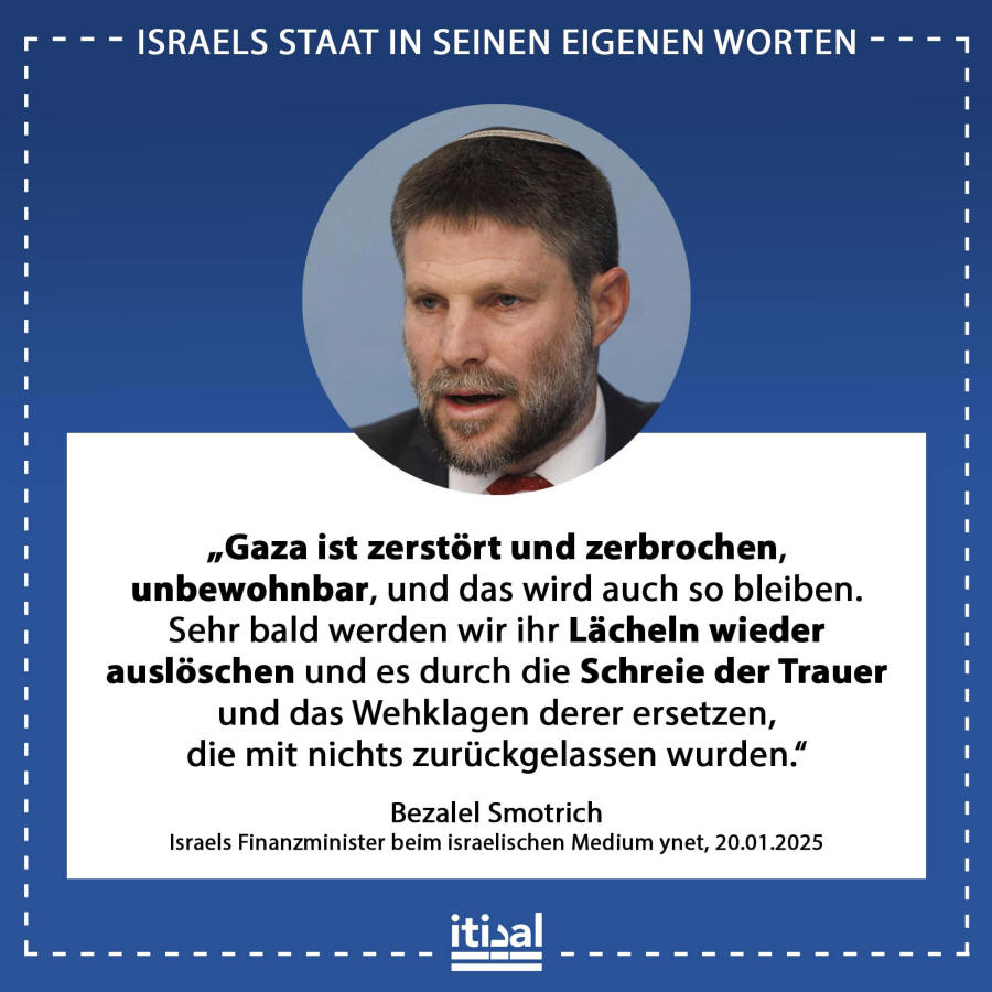 In der heutigen Aussendung finden Sie zwei Übersetzungen von +972Mag. Im ersten Beitrag analysiert Tariq Kenney-Shawa das Waffenstillstandsabkommen und das damit verbundene Kalkül sowohl der israelischen, als auch amerikanischen Regierung. Kenny-Shawa hält fest: „Aber der designierte Präsident [Trump, Anm.] und die Menschen, mit denen er sich umgibt, haben auch deutlich gemacht, dass sie Netanjahus Bereitschaft zur Zusammenarbeit belohnen werden. Wenn der israelische Premierminister den Waffenstillstand auch nur in seiner ersten Phase durchsetzt, wird er eine Rendite für seine Investition erwarten – und der Preis dafür wird eine weitere Massenvertreibung von PalästinenserInnen aus dem Gazastreifen und dem Westjordanland sein.“ Und: „Völkermord wird nicht nur mit Bomben und Kugeln verübt, und er endet auch nicht, wenn die Waffen schweigen. Krankheiten, Unterernährung und Traumata – unbehandelt von einem in Schutt und Asche gelegten Gesundheitssystem – werden noch jahrelang Menschenleben fordern, und es wird Jahrzehnte dauern, das Land nach der Verwüstung und Verpestung wieder bewohnbar zu machen.“