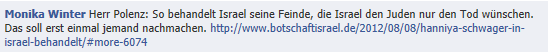 Am 11.8.2012 schreibt Monika Winter recht bedrohlich bei facebook: