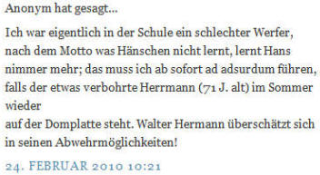 auf der Domplatte steht. Walter Hermann überschätzt sich in seinen Abwehrmöglichkeiten!