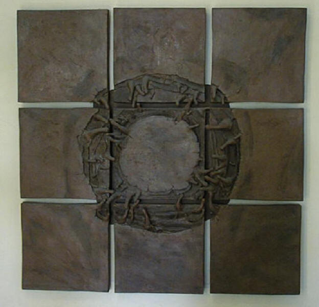 STADTBÜCHEREI ISERLOHN - Keramikrelief 2m x 2m - Seit 2002 nicht mehr sichtbar. Zu den Galerien, den Vergrößerungen und zurück auf die Bilder klicken / Click on pictures to enlarge