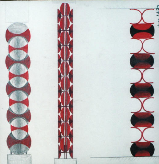 Entwürfe für Lichtsäulen aus Stahl oder Kunststoff 1973 - 1m - 25 m hoch
