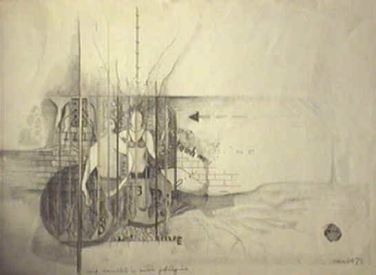 10 - wer ist wo gefangen? - 30x40 cm - 1973 - Bleistift