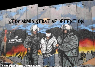 • Aufhebung des Administrativhaft-Rechts (der israelischen Regelung, die dem Militär ermöglicht, PalästinenserInnen (auch Minderjährige)) ohne Haftstrafe und ohne Anklageschrift faktisch unbefristet festzuhalten