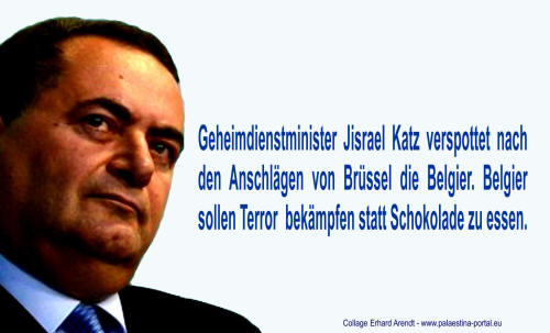Geheimdienstminister Israels Belgier sollen Terror bekämpfen statt Schokolade zu essen - Scharfe Worte statt Mitgefühl: Israels Geheimdienstminister Jisrael Katz verspottet nach den Anschlägen von Brüssel die Belgier. Einen anderen Vorwurf richtet er direkt ans Weiße Haus. - Ein israelischer Minister hat am Mittwoch mit harschen Worten den in seinen Augen laschen Umgang Europas mit der Terrorgefahr kritisiert. Einen Tag nach den folgenschweren Anschlägen in Brüssel verspottete Jisrael Katz, Ressortchef für Geheimdienste und Transportwesen, insbesondere die bekannte Vorliebe der Belgier für edle Schokolade. „Wenn sie in Belgien weiter ihre Schokolade essen, vom schönen Leben profitieren und sich der Welt als großartige Liberale und Demokraten präsentieren und dabei außer Acht lassen, das ein Teil der dort lebenden Muslime Terrorakte vorbereiten, können sie den Kampf gegen die nicht gewinnen“, sagte der schwergewichtige Minister im israelischen Staatsradio. Zugleich warf Katz „dem amerikanischen Präsidenten und den europäischen Führern“ vor, sich zu scheuen, „zu sagen, dass der Kampf gegen den islamischen Terror gerichtet ist. Wenn man seinen Feind nicht klar benennt, kann man keinen Weltkrieg führen“, sagte er. >>>