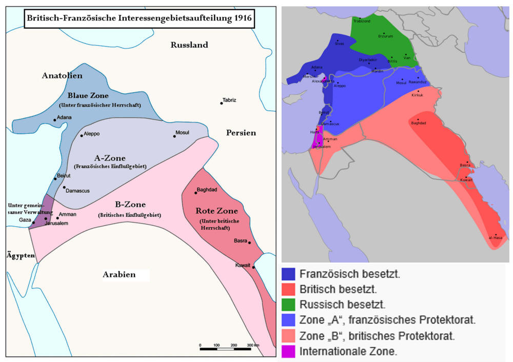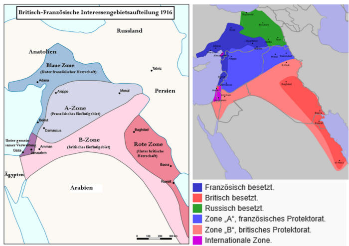 Teile und herrsche - Sykes-Picot-Abkommen: Vor hundert Jahren zogen Großbritannien und Frankreich die Grenzen des heutigen Nahen Ostens - Knut Mellenthin Die europäischen Großmächte stritten im Ersten Weltkrieg auch um »ihre« Anteile am zerfallenden Osmanischen Reich (Britische Artillerie vor der Schlacht um Jerusalem 1917) Am 23. November 1917 veröffentlichten die russischen Zeitungen Iswestija und Prawda ein zur damaligen Zeit sensationelles Dokument: Ein britischer und ein französischer Diplomat hatten sich im Mai 1916 im Auftrag ihrer Regierungen über die Nachkriegsaufteilung des Nahen Ostens verständigt. Nach diesen beiden Männern ist das Papier, dem eine Landkarte der Region mit Grenzmarkierungen beigefügt war, als »Sykes-Picot-Abkommen« bekannt. Wirklich sensationell war jedoch nicht der Inhalt des Dokuments. Derart frivol und abenteuerlich anmutende Vereinbarungen zwischen zwei oder manchmal auch mehr Staaten wurden im 19. und auch noch in der ersten Hälfte des 20. Jahrhunderts zu Dutzenden abgeschlossen und gehörten zur diplomatischen Routine. Auch das Deutsche Reich war an vielen derartigen Abkommen beteiligt. Aber weder der Inhalt noch auch nur die Existenz solcher Geheimverträge gelangten in der Regel an die Öffentlichkeit. So bestritten die Regierungen in London und Paris auch sofort ganz entschieden die Echtheit des Sykes-Picot-Abkommens und sprachen von »kommunistischer Propaganda«. Dennoch druckte die britische Tageszeitung Manchester Guardian das Papier am 26. November 1917 nach. >>>