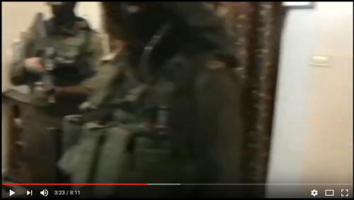 After forcing the children – at least one as young as four – out of their beds, the video shows the soldiers in full combat gear, armed with rifles and hand grenades, photographing and interrogating them. The father asks the soldiers why they are invading his home in the middle of the night.