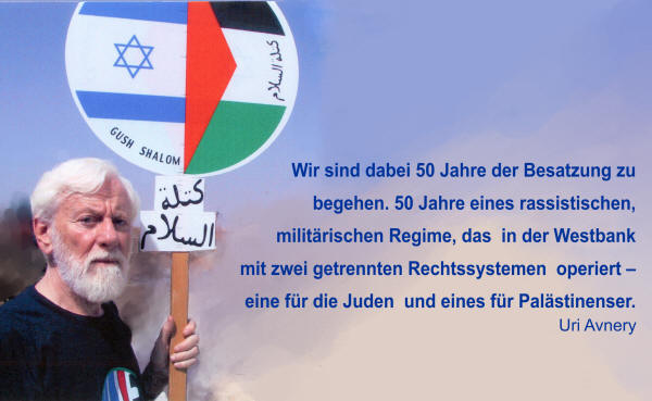 Die Besatzung dauert nun seit 50 Jahren an. Israelische Regierungen haben das Wachstum der Siedlungen (gegen internationales Recht) gefördert, den Gaza-Streifen abgeriegelt und die wirtschaftliche und soziale Entwicklung der Palästinensischen Gebiete eingeschränkt. Palästinas Traum von Unabhängigkeit und Selbstbestimmung wird immer blasser. Frieden und Sicherheit, von beiden Völkern herbeigesehnt, schwinden in dem Maße, in dem die Besatzung grausamer und gewalttätiger wird. Der Friede, den beide Völker suchen, schreit danach, aufleben zu dürfen.