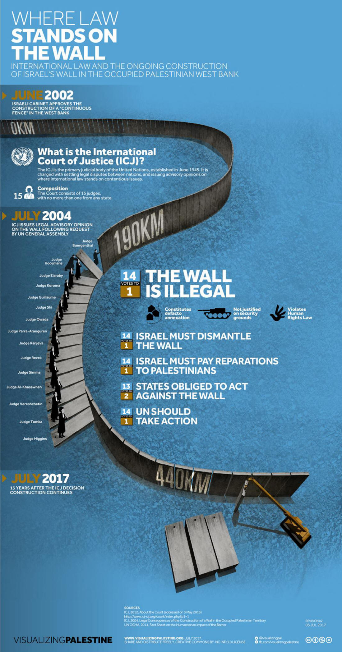 BIB Thema der Woche #30: Sperranlage - Theodor Herzl schrieb in "Der Judenstaat": „Für Europa würden wir dort [in Palästina] ein Stück des Walles gegen Asien bilden, wir würden den Vorpostendienst der Kultur gegen die Barbarei besorgen." Diese „Vision“ wird seit 2002 umgesetzt: Die israelische Regierung beschloss unmittelbar nach Beginn der zweiten Intifada 2001 den Bau einer Sperranlage, besser bekannt als ‚Mauer’, um – so die offizielle Begründung – Angriffe durch Palästinenser in Israel zu verhindern. Was die Sicherheit angeht, sollte dieser Fakt zu denken geben: Die etwa 15.000 Palästinenser aus dem Westjordanland, die ständig in Israel illegal arbeiten, werden durch die löchrige Mauer geschleust und – wenn sie verhaftet werden – an den entsprechenden Stellen von der israelischen Polizei abgeschoben. Es ist also kein Geheimnis, dass es Schlupflöcher und somit genügend Möglichkeiten gäbe, Terroristen einzuschleusen, wenn es gewollt wäre. Der Bau der Sperranlage dient also auch noch einem ganz anderen Zweck. Sie folgt nämlich zu 85 % nicht der international anerkannten Waffenstillstandslinie („green line“) von 1949, sondern verläuft teils kilometerweit tief innerhalb palästinensischen Gebietes. Somit wurde nicht nur palästinensisches Land enteignet, auf dem die Sperranlage sich befindet, sondern große weitere Gebiete, sodass die bestehenden jüdischen Siedlungen in das „Stammland Israel“ integriert werden und Land für Erweiterungen der Siedlungen annektieren wird. Gegenwärtig sind schätzungsweise 65 % der Sperranlage errichtet, der Rest befindet sich im Bau oder in Planung. Im Endausbau soll der „Schutzwall“ ca. 720 km lang werden und wird dann ca. 6% des Westjordanlandes abgetrennt haben. >>>