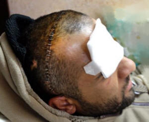 Es gibt auch eine tiefe Wunde über seiner Augenbraue
