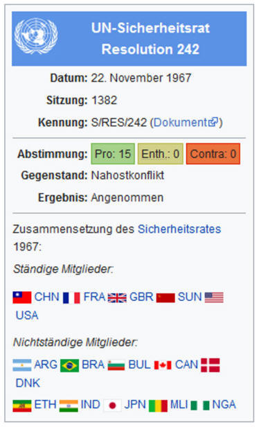 Resolution 242 erklärt, dass die Einrichtung eines gerechten und dauerhaften Friedens im Mittleren Osten die Anwendung der beiden folgenden