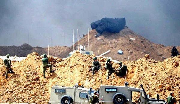 Hamas positions after bomb explosion near Gaza fence