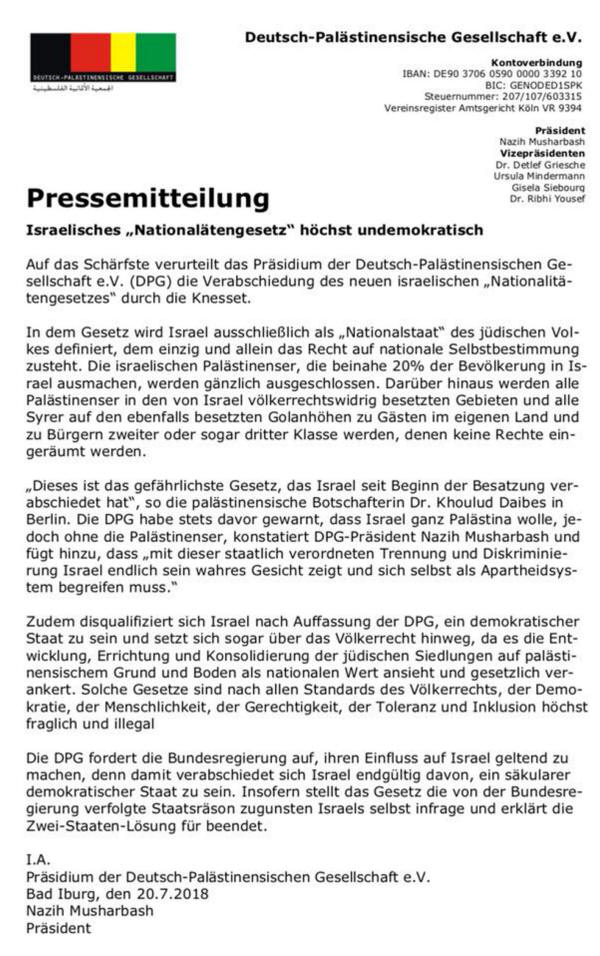 reagiert auf das Gesetz Israel als Jüdischer-National-Staat."