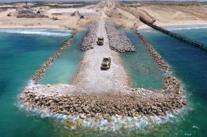 die von israelischen Sicherheitskräften geschützt werden, zerstörten