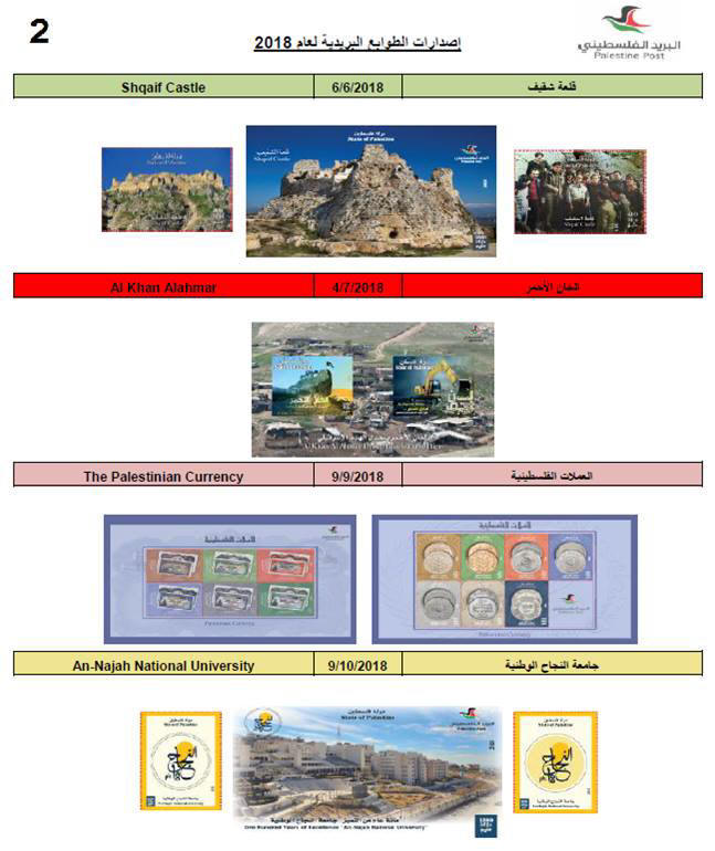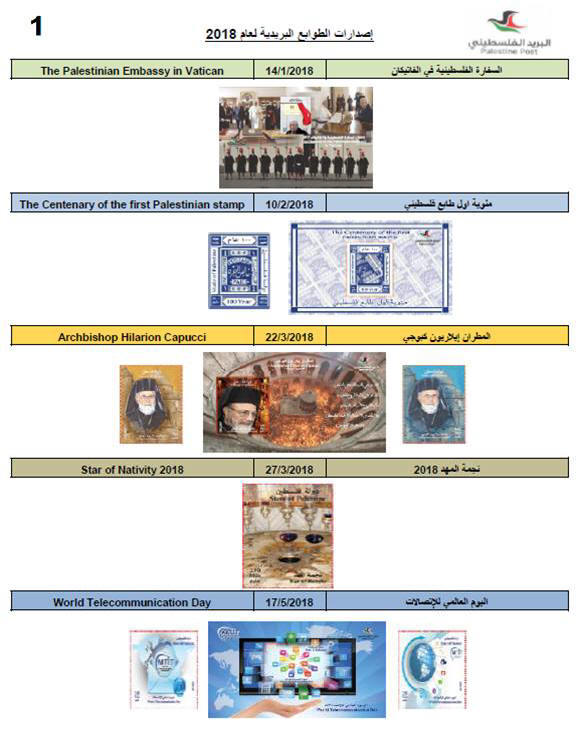 Palästinensische Briefmarken-Programm für das Jahr 2018
