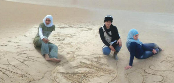 Izzeldin Abuelaishs Töchter Mayar, links, Aya, Zentrum und Besson besuchen einen Strand in Gaza etwa einen Monat, bevor sie 2009 von einer israelischen Panzergranate getötet wurden.