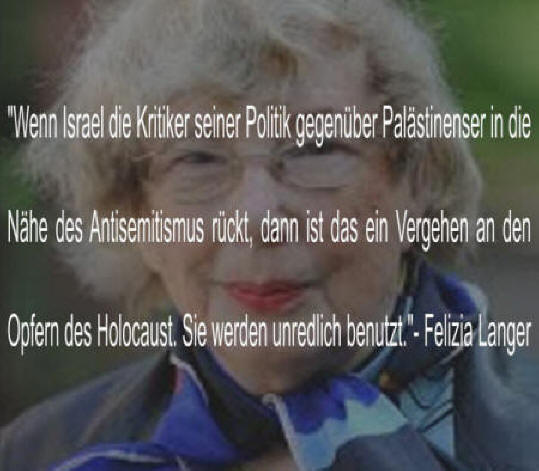 „Es ist nach wie vor so, dass sich Deutsche zu allem Möglichen kritisch äußern dürfen, aber nicht zu Israel. Menschenrechtsverletzungen anderswo anprangern - kein Problem! Mit Blick auf Israel aber kommt das nicht in Frage. Ich finde das zutiefst schockierend. Ich finde im Gegenteil, dass ein junger Deutscher, der nichts zu tun hat mit der deutschen Vergangenheit - außer der Verantwortung, dass sich so etwas nie wiederholen darf-, dass ein solcher Deutscher überall dafür eintreten muss, wenn Grundrechte verletzt werden .......... .Israelkritik per se mit Antisemitismus gleichzusetzen - das ist falsch und führt in die Irre .......... Wenn Unrecht Unrecht ist, muss man es benennen und sagen, dass gerade Israels