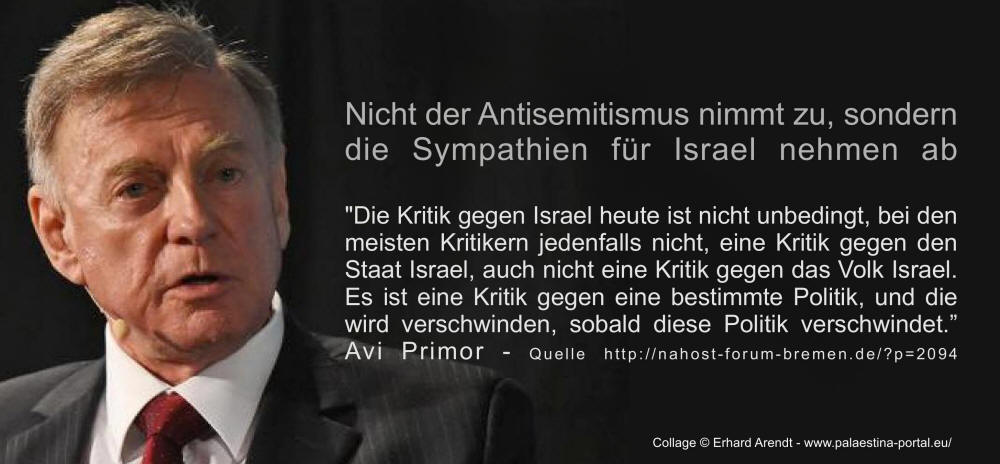 So schreibt etwa Uri Avnery bereits 2002: ,,Die Regierung Scharon ist wie ein riesiges Labor, in dem der Virus Antisemitismus gezüchtet und in die ganze Welt exportiert wird ..... Viele anständige Leute, die keinerlei Hass gegen Juden empfinden, aber die Drangsalierung der Palästinenser verabscheuen, werden jetzt als Antisemiten bezeichnet. ..... Die eigentliche Folge ist, dass Israel nicht nur die Juden nicht vor Antisemitismus schützt, sondern im Gegenteil: Israel fabriziert und exportiert Antisemitismus, der Juden rund um die Welt gefährdet. "C1