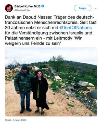 Foto auf Twitter, das Kofler mit einer B‘Tselem