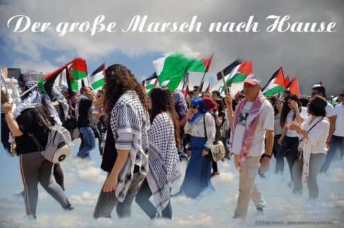 *Unbestreitbares Recht auf Rückkehr* - Für Israel ist das palästinensische „Problem“ ein Konzept, das der internationalen Gemeinschaft leichter zu verkaufen ist, wenn die Palästinenser als gewalttätig und bewaffnet etikettiert werden können. Die Wirklichkeit jedoch ist, dass der Große Marsch die friedlichen Gesichter der Männer, Frauen, Kinder und älteren Bewohner Gazas zeigt. Der Bedeutung des Marsches kann nichts unterstellt werden. Er ist symbolisch für die Absicht des palästinensischen Volkes, friedlich weiterzumachen, um für ihr unbestreitbares Recht auf Rückkehr zu kämpfen. Sie sendet die Botschaft aus, dass Millionen von Flüchtlingen, die auf dem ganzen Globus verstreut sind, nach Hause zurückkehren müssen. Es ist ihr Recht. Es darf nicht länger als eine akademische Übung oder eine theoretische Frage behandelt werden. Es ist praktisch erreichbar und muss so behandelt werden. Der sehr viel größere Teil des Landes, in dem die Flüchtlinge gelebt hatten, bevor Israel sie 1948 vertrieben hat, ist entweder noch leer oder nur dünn besiedelt. Mit dem richtigen politischen Willen wäre es möglich, die Tragödie, die Millionen palästinensischer Flüchtlinge zur Folge hatte, zu beenden und eine friedliche Existenz an der Seite der jüdischen Nachbarn sicher zu stellen.