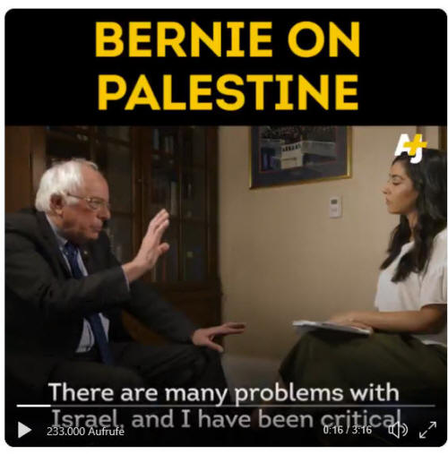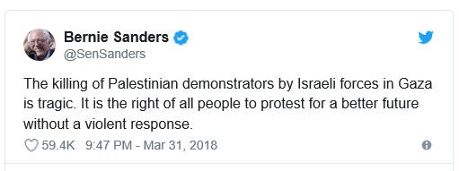 Letztes Jahr verteidigten Sanders das Recht der Palästinenser auf Demonstrationen, nachdem israelische Scharfschützen das Feuer auf unbewaffnete Demonstranten in Gaza eröffnet hatten.