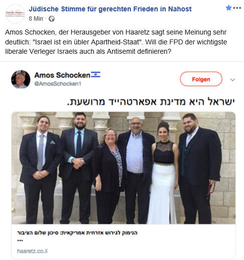 Die Fußballspieler, deren Spiel verboten ist, die Frau, die aus ihrer Stadt vertrieben und von ihrer Familie getrennt wurde, der Hinterbliebene Vater, der den Körper seines Sohnes nicht zurückbekommen kann, um ihn zu begraben, sind Opfer des israelischen Bösen. Sie leben eine Realität, die genau das Gegenteil von Freiheit ist. Es besteht keinerlei Zusammenhang zwischen den Verbrechen an diesen Palästinensern und der israelischen Sicherheit. Diejenigen, die ihnen das alles zufügen, saßen am Seder-Tisch und lasen laut über die Freiheit. Kann man sich etwas Heuchlerisches, etwas Aufregenderes vorstellen? Übersetzt mit www.DeepL.com/Translator Quelle