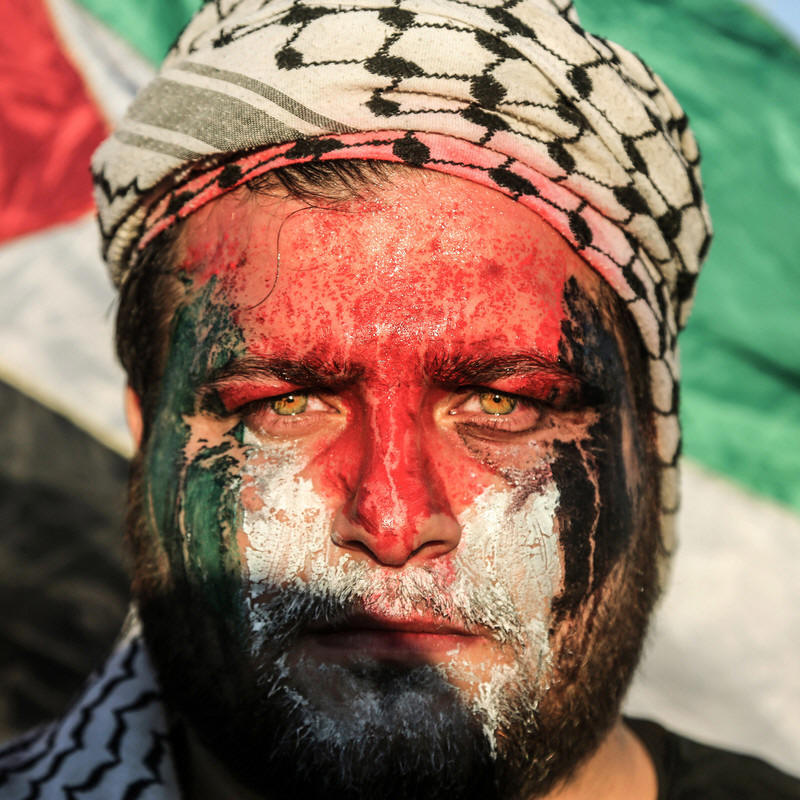Letzten Freitag, als ich mir die palästinensische Flagge auf das Gesicht malen ließ, wurde ich von einem Gasbehälter direkt in meinem Rücken getroffen. Ich wurde schwer verletzt und in ein Krankenhaus gebracht. Ich werde jetzt zu Hause behandelt. Ich möchte mich erholen, damit ich nächsten Freitag[zurück zu den Protesten] gehen kann.