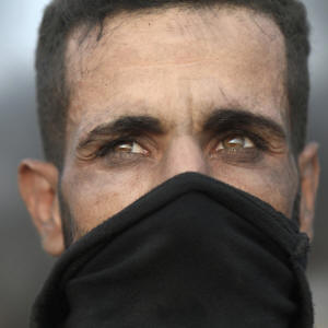 Zwei Fotografien erzählen die ganze Geschichte, aus etwa 2.000 Worten. In der ersten sehen Sie den israelischen Kommandosoldaten, bewaffnet und geschützt von Kopf bis Fuß, sein Gesicht verborgen, der über einer Kapuzenmasse steht. Der obskure Anblick ist der palästinensische Teenager Osama Hajajra aus dem 15-hälfte Jahre alten Dorf Tekoa, der kurz zuvor von israelischen Soldaten im Hinterhalt verhaftet wurde. Die Hände des Teenagers sind hinter seinem Rücken gefesselt, seine Augen sind mit einem Stück Flanell bedeckt, er kniend unter Befehl auf dem Boden, sein Gesicht nach unten, sein Rücken gebeugt als Soldat aus einer Eliteeinheit der israelischen Verteidigungskräfte zeigt ein hochentwickeltes Scharfschützengewehr auf ihn.