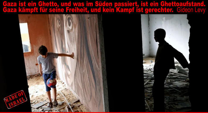 Der Gaza-Ghetto Aufstand - Gideon Levy - 5. Mai 2019 - Die Grausamkeit und Verwegenheit der Menschen in Gaza hat am Samstag wieder einmal neue Höhen erreicht: Dutzende von Raketen auf Israel vor der Woche seines Unabhängigkeitstages, kurz nach seinem Holocaust-Gedenktag und vor allem zwei Wochen vor der Eurovision. Wie kannst du es wagen, wie kannst du es wagen?