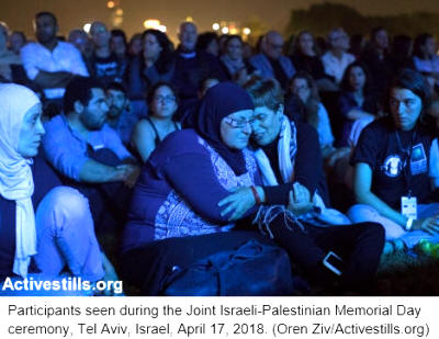 Seit 14 Jahren kommen Israelis und Palästinenser, die Familienmitglieder durch den Konflikt verloren haben, am israelischen Gedenktag zusammen, um eine alternative, gemeinsame Zeremonie durchzuführen. Die Zeremonie markiert den Tod sowohl von Israelis als auch von Palästinensern, die im Laufe der Jahre getötet wurden.
