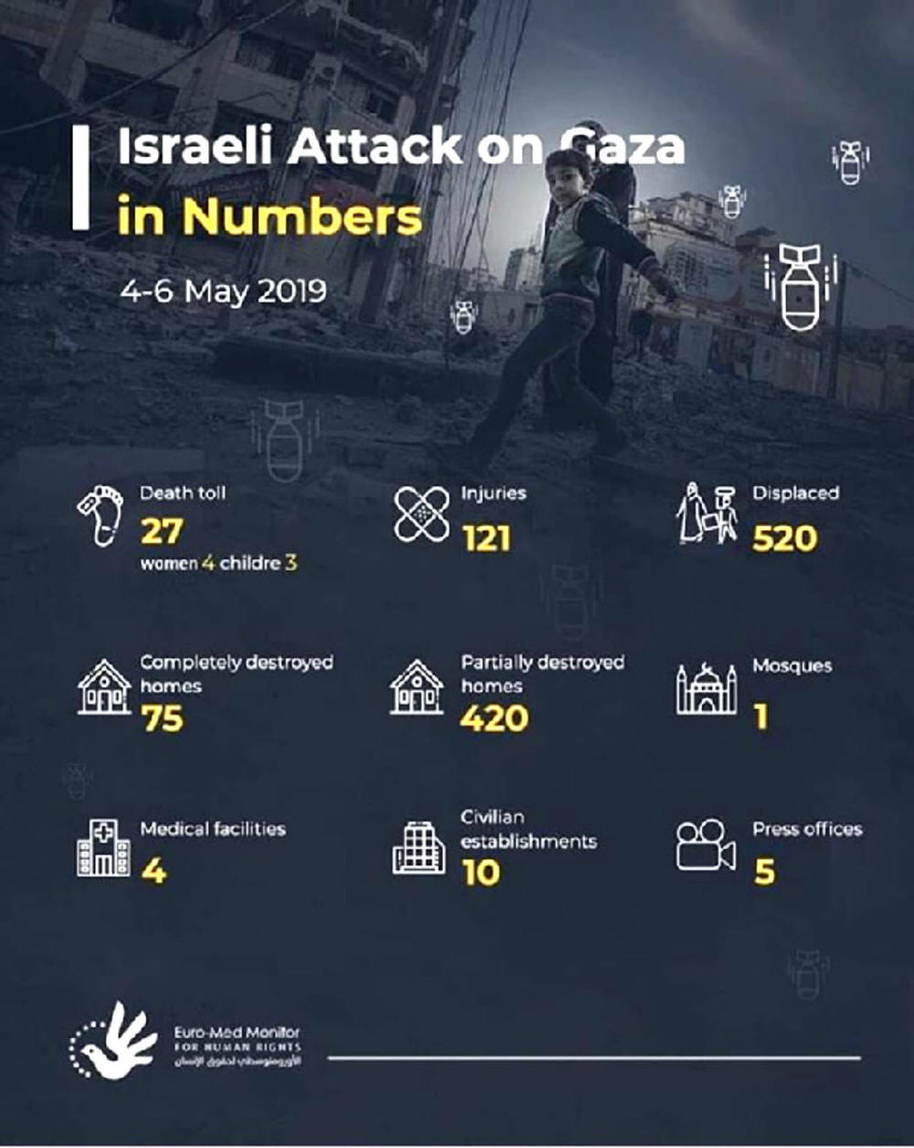 Dennoch reagierte das israelische Militär sofort mit einem Luftangriff und der Reduzierung der Gaza von Gaza auf nur sechs Meilen bis zur Rakete. Die Situation hat sich während der regulären Freitags Proteste an der Gaza-Grenze weiter eskaliert, als ein Jeep des israelischen Militärs in Brand gesetzt wurde. Während des Protests wurden zwei Hamas-Kämpfer und zwei palästinensische Aktivisten durch das israelische Militär getötet.[6] nach der ersten Eskalation führten drei Tage Gewalt zu mehr als 30 Todesopfern und viele weitere Verletzte.