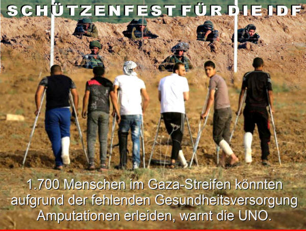 1.700 Menschen im Gaza-Streifen könnten aufgrund der fehlenden Gesundheitsversorgung Amputationen erleiden, warnt die UNO. - Tausende von Palästinensern, die bei Protesten entlang der Grenze verletzt wurden, können Gliedmaßen verlieren, da sie nicht in der Lage sind, die erforderliche angemessene medizinische Versorgung zu erhalten, sagt ein UN-Beamter. - 9. Mai 2019